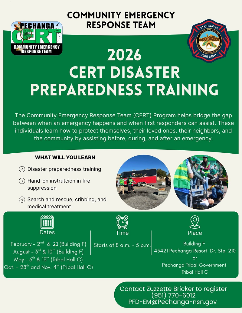 If you have any questions contact Pechanga Emergency Management: (951) 770- 6012